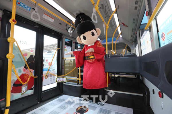 세종도시교통공사(사장 배준석)는 이달 13일부터 12월까지 B0노선을 운행중인 친환경 전기굴절버스 12대 중 “응원하는 충녕” 캐릭터가 디자인되어있는 1대(1501호)를 선정해 세종시의 다양한 현안사항을 응원하는 충녕캐릭터버스를 운행한다고 밝혔다.