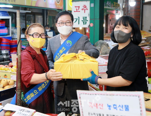 이날 장종태 서구청장은 직접 장을 보며 전통시장 상인들의 이야기를 경청하고 어려움을 함께 나누었다.
