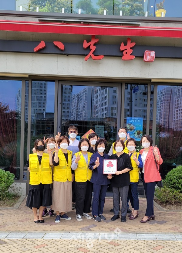 세종특별자치시 고운동 지역사회보장협의체(공동위원장 김민예·안정순)가 14일 고운동에 소재한 ‘팔선생(대표 한효숙)’에 착한가게 12호 현판을 전달했다.
