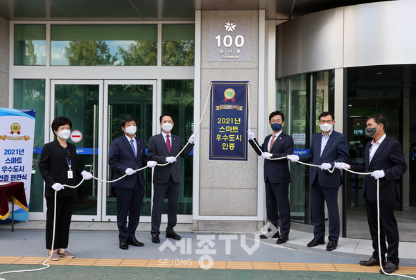 대전광역시의회 권중순 의장은 김찬술 산업건설위원장과 함께 23일 대전시청 북1문 앞에서 열린 2021년 스마트도시 인증 현판식에 참석했다. 저작권자 © SJB세종TV 무단전재 및 재배포 금지 세종TV 다른기사 보기 페이스북 트위터 카카오톡 네이버블로그 구글+ URL복사 기사공유하기