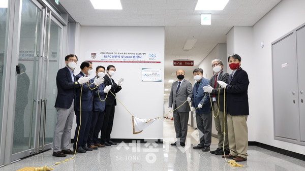 시와 고려대 세종캠퍼스는 지난 27일 세종산학협력관에서 생체시계 기반 항노화 융합 지역혁신 선도연구센터(RLRC) 현판식과 오픈랩 행사를 열었다.