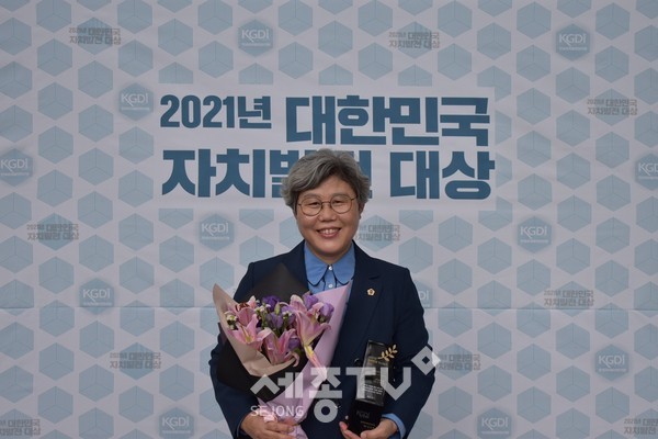 충남도의회 김명숙 의원(청양·더불어민주당)이 5일 백범김구기념관에서 열린 2021년 대한민국 자치발전 대상 광역자치부문 대상을 수상했다.