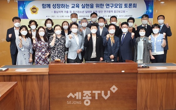 충남도의회 ‘함께 성장하는 교육 실현을 위한 연구모임’(대표 양금봉 의원)은 5일 운영위원회 회의실에서 위기청소년 지원방안 마련을 위한 연구용역 중간 보고와 토론을 진행했다.