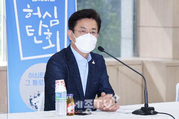 허태정 대전시장은 6일 오전 월평동 화상경망장 2층에서 지역주민들과 ‘허심탄회’를 통해 현장의 소리를 경청하는 기회를 가졌다.