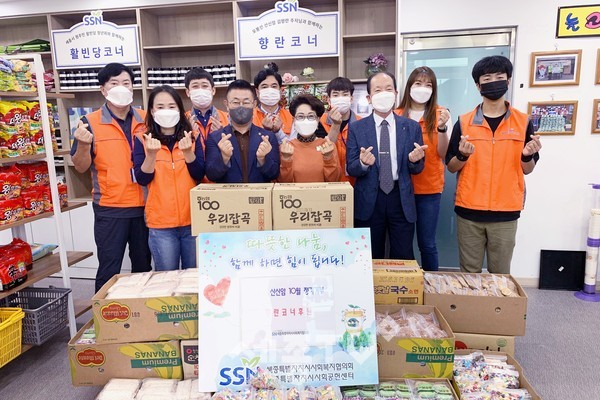 오봉산 산신암 김향란 주지가 7일 세종시사회복지협의회(회장 김부유, 이하 ‘협의회’)산하 사회공헌센터를 방문, ‘향란코너’에 150만원 상당의 식료품을 지정 기탁했다.
