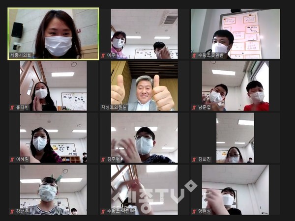 세종특별자치시의회(의장 이태환)는 6일 연기면 수왕초등학교 4학년 학생들과 함께 본회의장과 지역구의원, 학교 교실을 화상회의 프로그램으로 연결하는 ‘찾아가는 온라인 의회교실’을 진행했다.