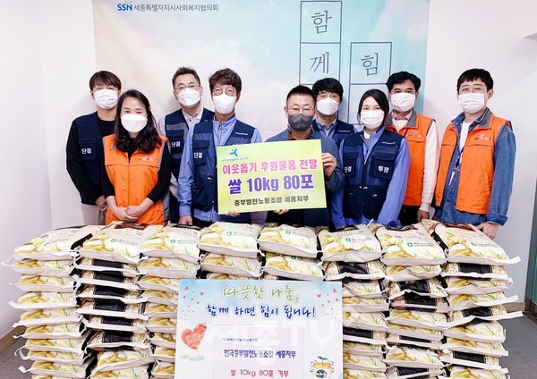 이번 기부는 한국중부발전노동조합 세종지부 자체적으로 준비한 후원품으로 세종지역 복지 사각지대에 고루 사용되길 희망한다며 200만원 상당의 쌀 10kg 80포대를 기부했다.