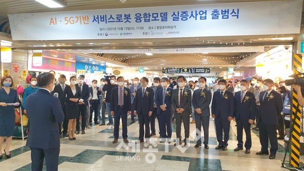 대전광역시의회 권중순 의장은 13일(수) 중앙로 지하상가에서 열린‘AI·5G 기반 서비스로봇 융합모델 실증사업 출범식’에 참석했다.