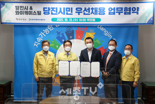 당진시와 와이케이스틸이 지난 13일 시청 목민홀에서 당진시민 우선채용을 위한 업무협약을 체결했다.