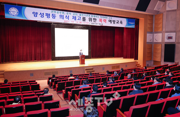 대전시는 14일 오전 시청 대강당에서 허태정 시장을 비롯한 본청, 사업소 간부공무원, 특별보좌관, 공사공단, 출연기관 대표 50여명을 대상으로 성폭력가정폭력 예방교육을 실시했다고 밝혔다.