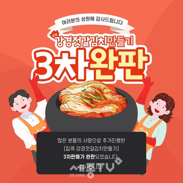 지난 14일 오전 10시 랜선관람객들의 뜨거운 성원에 힘입어 ‘앙코르’판매한 강경젓갈김치만들기 키트 5백 개와 어리굴젓 키트 2백 개가 또 완판을 기록했다.