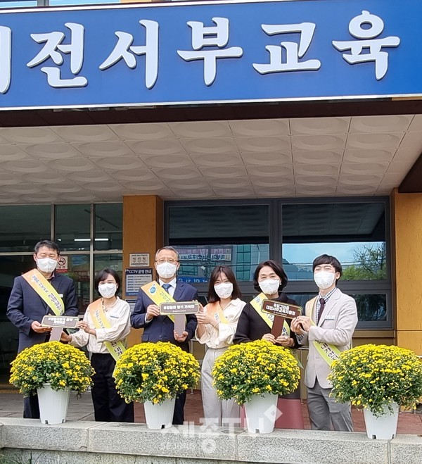 대전광역시서부교육지원청(교육장 임민수)은 일상생활 속 청렴 실천 정착과 코로나19 여파로 어려움을 겪고 있는 지역 화훼 농가를 돕기 위해 10월 15일(금) 청렴 마스크 배부 및 청렴 국화 전시 행사를 실시했다고 밝혔다.