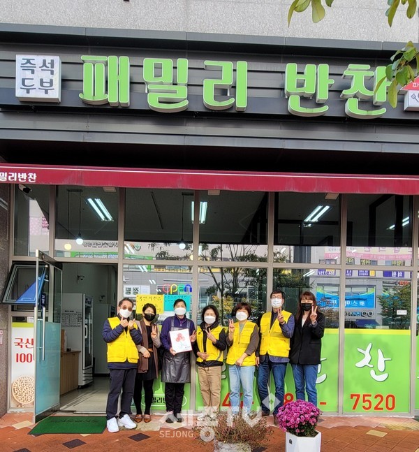 세종특별자치시 고운동 지역사회보장협의체(공동위원장 김민예·안정순)가 19일 ‘고운마음 나눔실천’에 동참한 고운동 소재 ‘패밀리반찬(대표 전민자)’에 착한가게 현판을 전달했다.