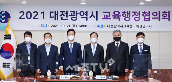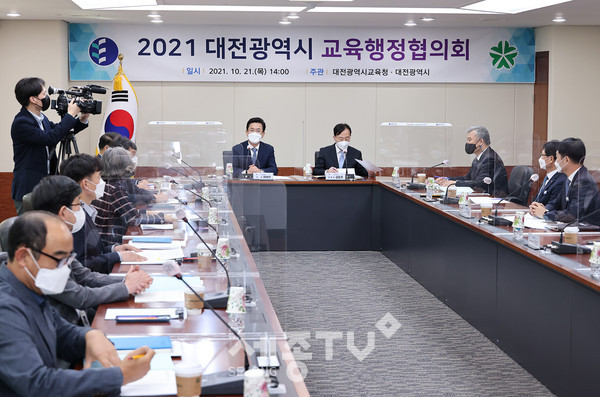 대전시(시장 허태정)와 대전시교육청(교육감 설동호)는 10월 21일 대전시교육청 6층 중회의실에서 대전교육 발전을 위한 ‘2021년 대전광역시 교육행정협의회’를 개최했다.
