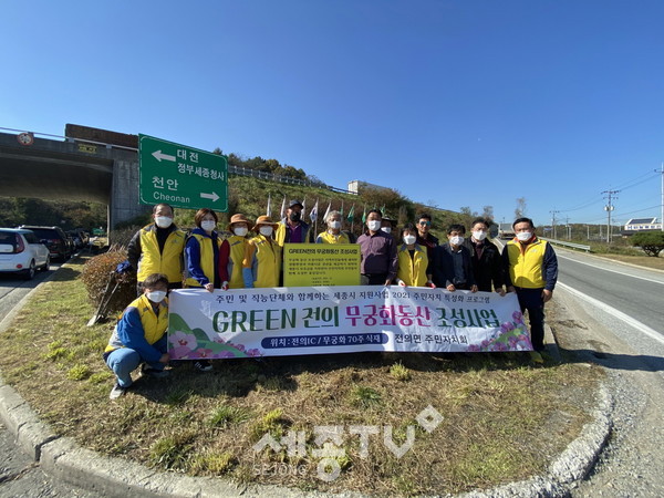 참여자들은 이날 전의IC 일대에 무궁화 70주를 식재하고 환경정화를 위한 쓰레기 수거 등 활동을 벌였다.