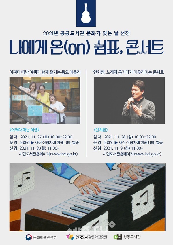 부천시립상동도서관에서는 2021년 공공도서관 문화가 있는 날 공모사업에 선정되어 「나에게 온(on) 쉼표, 콘서트」를 개최한다.
