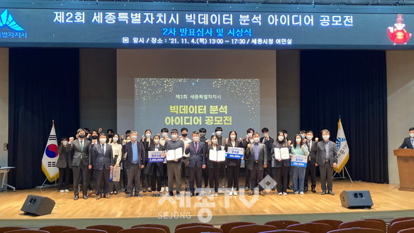 세종특별자치시(시장 이춘희)가 지난 4일 ‘빅데이터로 세종을 널리 이롭게’라는 주제로 ‘제2회 빅데이터 분석 아이디어 공모전’ 시상식을 진행했다.