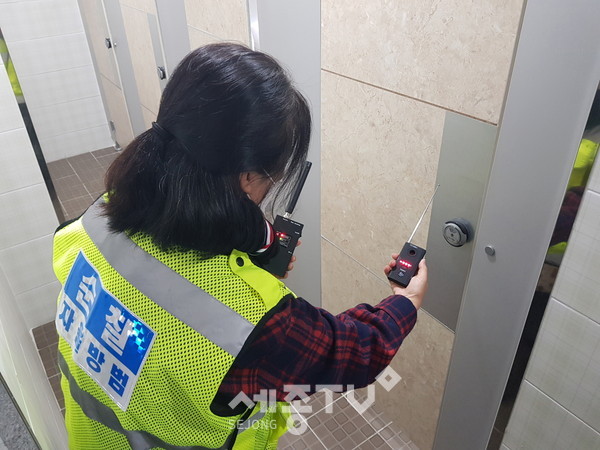 합동점검반은 이날 도담동 행정복지센터, 방죽천 공중화장실 등을 대상으로 전파 탐지기, 렌즈 탐지기 등을 이용해 환풍기, 쓰레기통, 문 등을 집중 점검했다.