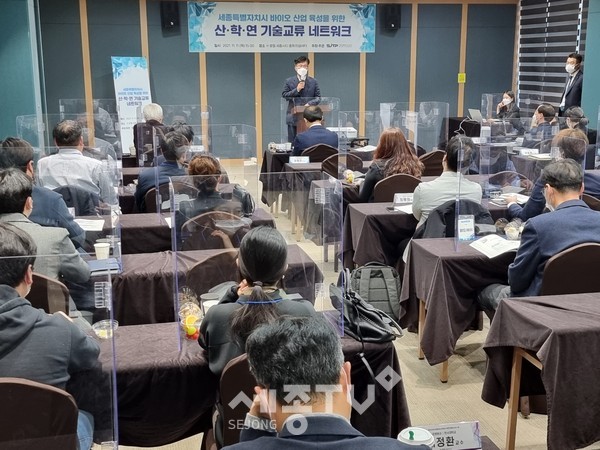 세종특별자치시(시장 이춘희)가 세종테크노파크(세종TP)와 ‘산·학·연·병(病·의료계)’ 전문가와 11일 H호텔 세종시티에서 ‘2021년 바이오 기술교류회 및 바이오메디컬활성소재센터 자문위원회’를 개최했다.