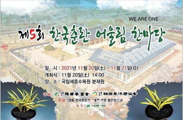 한국수목원정원관리원 소속 국립세종수목원(원장 이유미)은 한국 난 산업박람회(11월 6일∼7일), 한국분재대전(11월 11일∼14일)을 성황리에 마치고 오는 20일부터 21일까지 이틀간 제5회 한국춘란 어울림 한마당을 분재원에서 개최한다고 밝혔다.