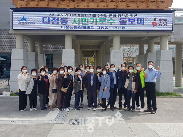 세종특별자치시 다정동 통장협의회(회장 김성호)가 지난 17일 다정동 도란뜰공원 일대에서 ‘시민 가로수돌보미 활동’을 펼쳤다.
