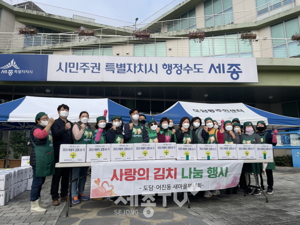 세종특별자치시 도담동새마을부녀회(회장 정복숙)가 지난 20일 도담동 복합커뮤니티센터 야외 광장에서 어려운 이웃을 돕기 위한 사랑의 김장나누기 행사를 진행했다.