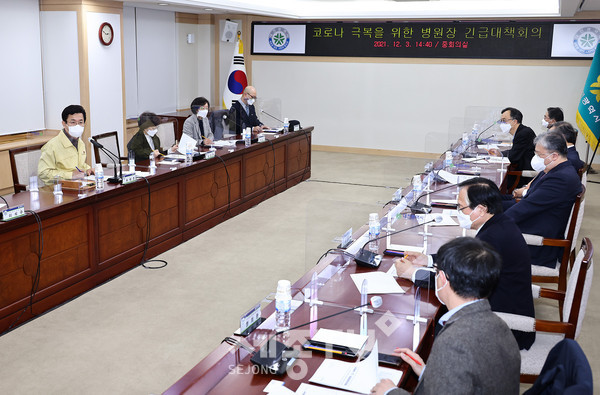 단계적 일상회복에 따른 코로나19 확진자가 급격하게 증가하여 중환자실 병상가동률 악화 등 의료체계 여력의 한계 우려에 따라 허태정 시장과 관내 9개 종합병원장이 위기 대응 방안을 논의했다.