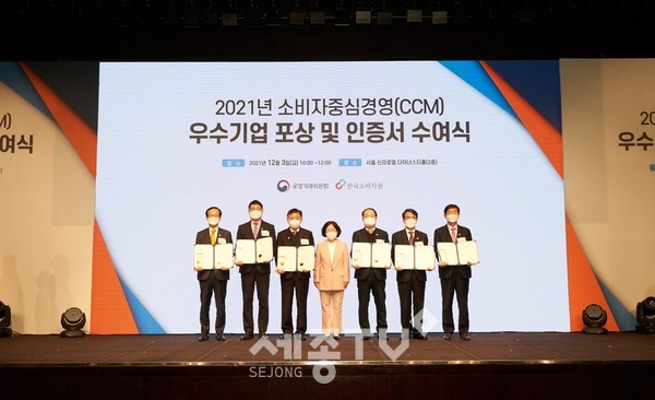 세종특별자치시시설관리공단(이사장 계용준, 이하 공단)은 공정거래위원회와 한국소비자원 주최로 열린 2021년 소비자중심경영 인증 수여식에서 세종시 공공기관 최초로 CCM(소비자중심경영, Consumer Centered Management) 인증을 받았다고 7일 밝혔다.