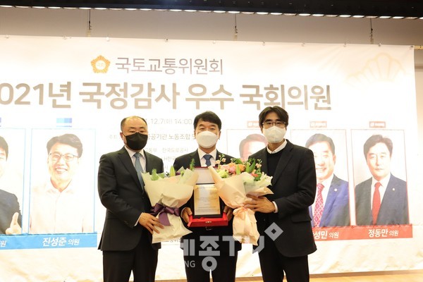 문진석 국회의원(충남 천안갑, 국회 국토교통위원회 위원)은,7일 국토교통 공공기관 노동조합 연대회의가 선정한 ‘2021 국정감사 우수의원상’ 수상의 영예를 안았다.