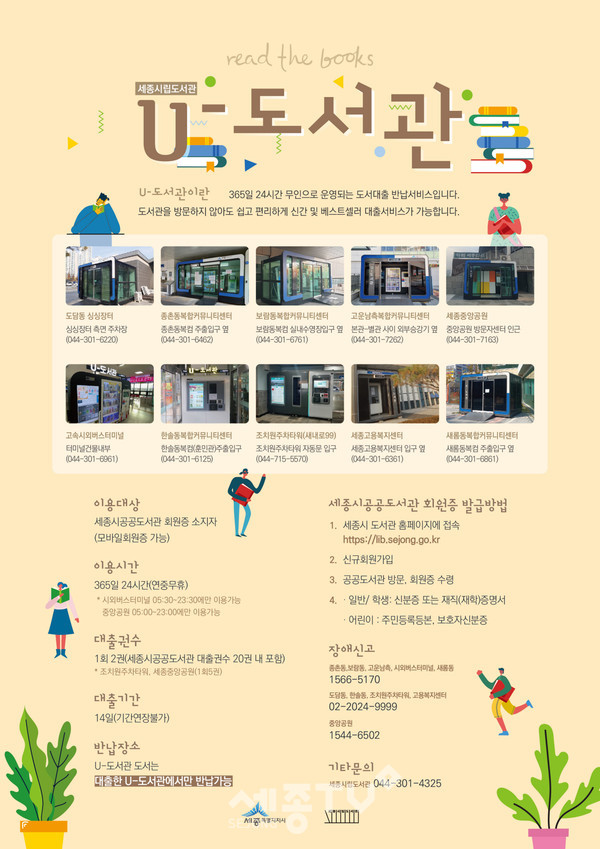 조설희 세종시립도서관장은 “스마트 도서관은 운영 시간 내 방문이 어려운 이용자들이 언제 어디서나 도서를 이용할 수 있다는 게 장점”이라며 “일상 속의 독서 생활을 향유 할 수 있는 기회가 되기를 바란다”라고 말했다.