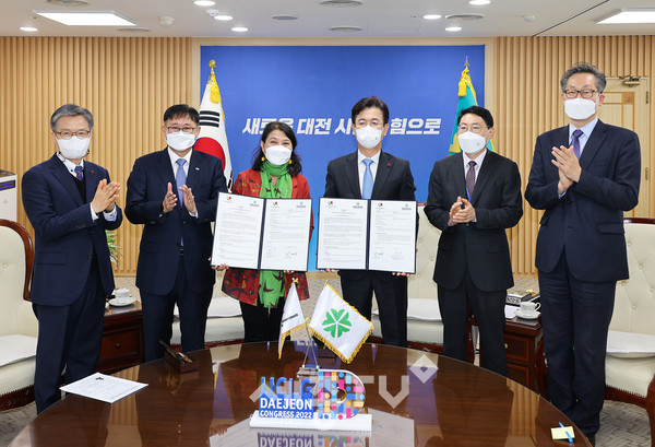 허태정 대전시장은 15일 UCLG ASPAC(세계지방정부연합 아시아태평양지부) 버나디아 찬드라데위 사무총장과 2022년 UCLG-ASPAC이사회(집행부회의 포함) 대전 개최를 위한 업무협약을 체결했다.