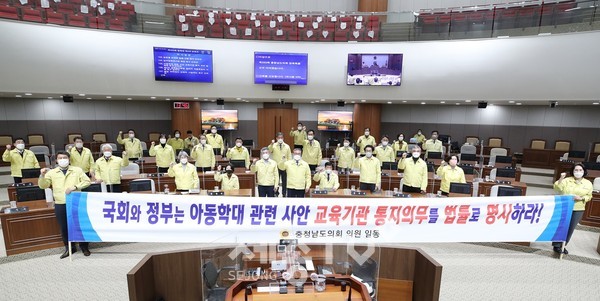충남도의회는 16일 제333회 정례회 4차 본회의에서 ‘아동학대 관련 사안 교육기관 통지 의무 법제화 촉구 건의안’을 채택했다.