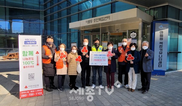 세종특별자치시 아름동 국공립 아름나무어린이집(원장 강모숙)과 아름동자율방범대(대장 임재곤)가 30일 연말을 맞아 어려운 이웃을 돕기 위해 성금을 기탁했다.