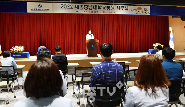 세종충남대학교병원(원장 나용길)은 1월 3일(월) 오전 8시 4층 도담홀(대강당)에서 주요 보직자들이 참석한 가운데 2022년도 시무식을 개최하고 도전과 혁신 정신으로 지역민 기대에 부응하는 최고의 의료기관으로 발돋움할 의지를 다졌다.