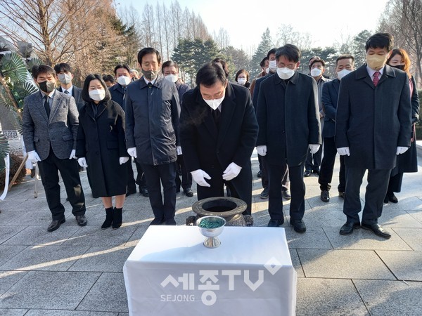 국민의힘 세종시당은 1월 3일(월) 오전 조치원읍 침산리에 위치한 충령탑에서 최민호 시당위원장을 비롯한 주요 당직자 및 제20대 대통령선거 세종시당 선거대책위원들이 참석하여, 순국선열의 숭고한 뜻을 기리고 헌화ㆍ분향하며 정권교체를 위한 필승을 다짐했다.
