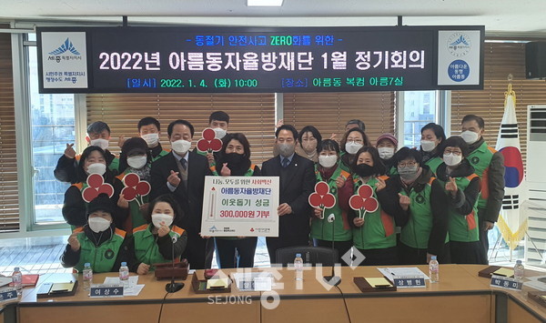 세종특별자치시 아름동 자율방재단(단장 양영애)이 지난 4일 ‘희망 2022 나눔캠페인’ 동참을 위해 기부콜 나눔챌린지 참여와 동시에 이웃돕기 성금 30만 원을 기탁했다.