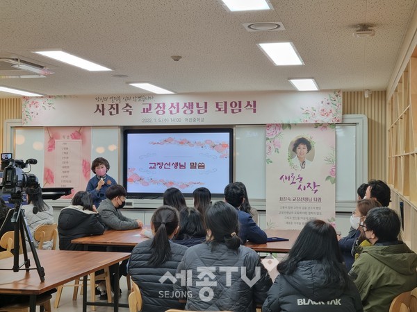 사 교장은 퇴임에 앞서 “지난 40여 년 동안 받은 사랑을 결코 잊지 않겠다. 마음의 빚을 다 갚기도 전에 더 큰 숙제를 안고 떠나지만, 우리 세종교육의 미래를 위해 큰 그림을 그리고 다시 돌아오겠다. 세종의 모든 아이들을 내 아이처럼 키우고 돌보기 위해 반드시 돌아오겠다”고 약속했다.
