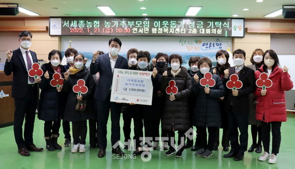 서세종농협 농가주부모임(회장 정만순)은 21일 연서면을 찾아 농산물판매 등 수익사업으로 마련한 성금 300만 원을 어려운 이웃을 위해 써달라며 기탁했다.