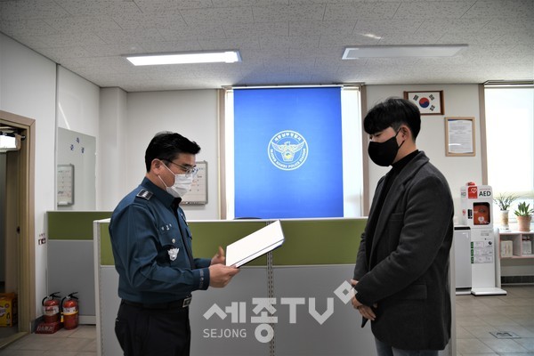 세종남부경찰서(서장 김경열)는 24일 준강도 현행범인 검거에 기여한 A씨에게 표창수여 및 범인보상금을 지급하였다.