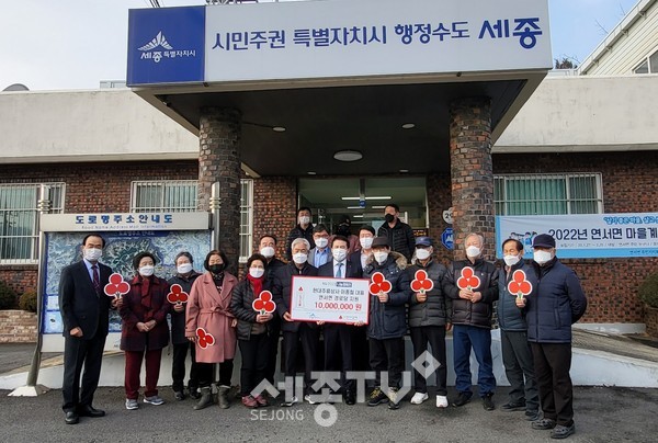 이날 기탁받은 기부금은 세종사회복지공동모금회를 통해 연서면 지역사회보장협의체에서 이종철 대표의 뜻에 따라 고향인 봉암리 경로당 7곳의 257명의 어르신들에게 설 명절에 필요한 구입·전달하는 데 사용될 예정이다.