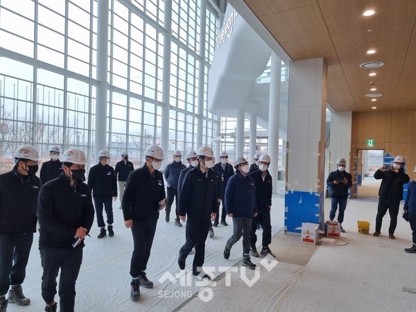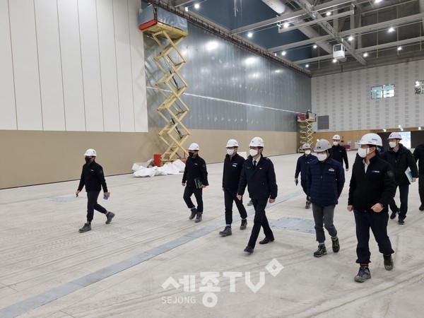 대전시 채수종 소방본부장이 26일 오전 설 명절 대형화재 예방을 위해, 제22회 세계지방정부연합(UCLG) 총회가 열리게 될 유성구 도룡동 대전국제전시컨벤션센터(DICC) 공사현장을 방문해 건물 내·외부 안전관리 상황을 점검하고, 관계자에게 안전관리를 당부했다.