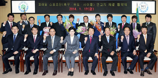 대전시는 17일 대전시청 중회의실에서 염홍철 대전시장과 최연혜 코레일 사장이 참석한 가운데 코레일 스포츠단 연고지 협약을 체결했다.