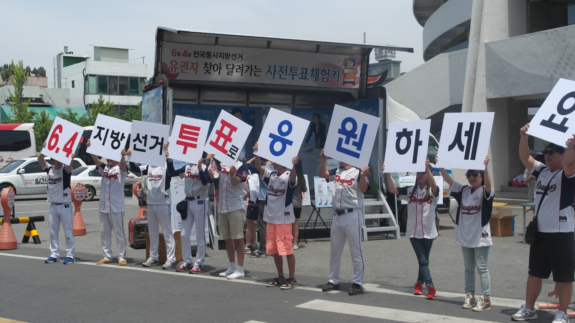 사전투표제도 홍보 및 투표참여 분위기 조성을 위하여 5월 18일(일) 12:20 한밭야구장에서