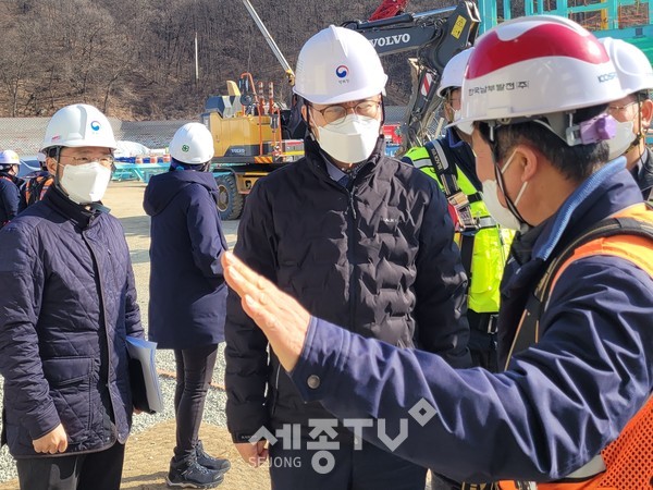 문성요 행정중심복합도시건설청 차장은 코로나19 확산 방지 및 동절기 건설사고 예방을 위해 2월 17일(목) 신세종 복합발전소 건설공사 건설현장을 찾아 코로나19 방역이행 상황 및 안전·품질관리 현황 점검을 실시하였다.