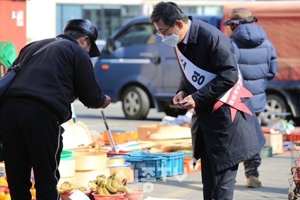 조 예비후보는 서천군청길 주변에서 주민들에게 명함을 배포하며 서천지역의 교육현안에 대하여 의견을 청취하였고, 5일장이 서는 한산장터로 옮겨 역시 명함을 나누며 주민들로부터 지역의 교육현안을 들었다.