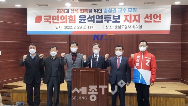 『공정과 상식 회복을 위한 충청권 교수모임』 (공동대표:김정식, 손종학, 이정호. 이하 ‘교수모임’)은 2월 25일(금) 국민의힘 충남도당에서 윤석열 후보에 대한 지지를 선언했다.