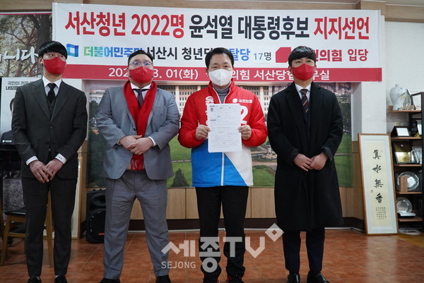 이날 지지 선언 행사에는 서산 청년 2,022명이 국민의힘 윤석열 후보지지 선언에 이름을 올렸으며, 특히 서산지역 더불어민주당 청년당원 17명이 탈당과 함께 국민의힘에 입당해 눈길을 끌었다.