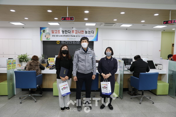 천안동남경찰서(서장 총경 조재광)는, ‘22. 3. 2.(수) 2회에 걸쳐 3,100만원 상당의 보이스피싱 피해를 예방한 동천안농협 성남지점 직원 2명에게 감사장을 수여했다.