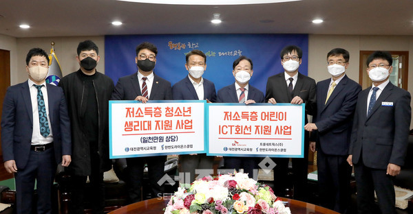 대전광역시교육청 조훈 혁신정책과장은 “코로나19 극복을 위해 각계각층에서 다양한 형태의 교육기부가 이어지고 있는 가운데 나눔 문화를 실천해 주심에 진심으로 감사드리며, 경제적 어려움으로 인해 기본적인 건강권과 정보통신 지원에 소외되는 일이 없도록 교육청도 취약계층 등 어려운 학생들을 위해 더욱 노력하겠다”고 말했다.