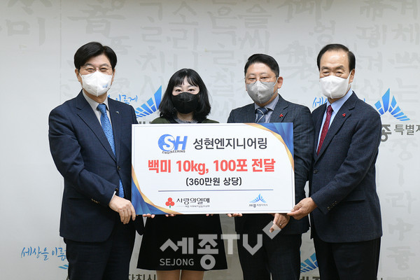 ㈜성현엔지니어링은 2019년부터 매년 백미 100포를 기탁하며 어려운 이웃을 돕고 있다.